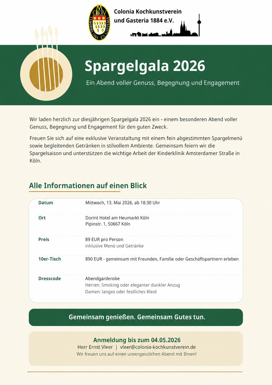 Sehr geehrte Mitglieder und Freunde des Colonia Kochkunstvereins und Gasteria 1884,